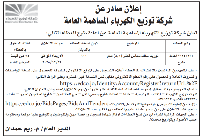شركة توزيع الكهرباء المساهمة العامة